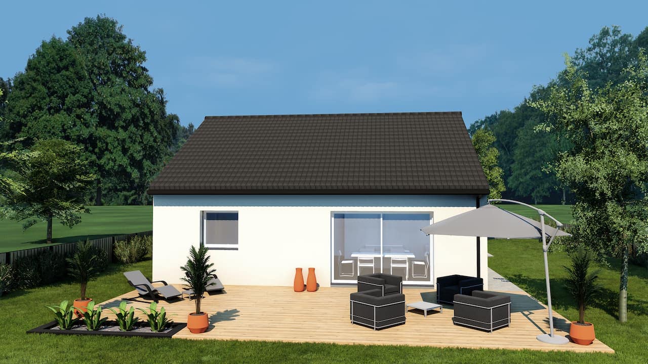 Published in: MELODIE 2 77 – Enduit Clair – FAC ArriŠre – Tuile noire – Menuiserie blanche Author Maison Eurêka Published on: 1 août 2024